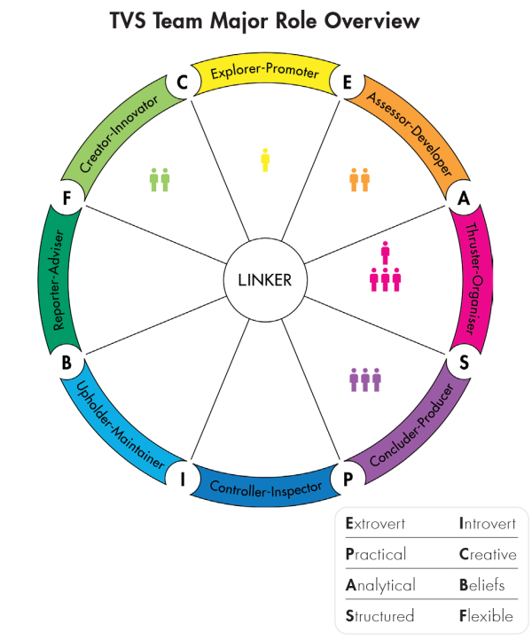 When analysing the distribution of role preferences on the Team Management Wheel, the TVS team observed a bias for action. This clarified that they had the right mix for a growing business, and highlighted which roles might be required to enhance their teamís performance in the future.